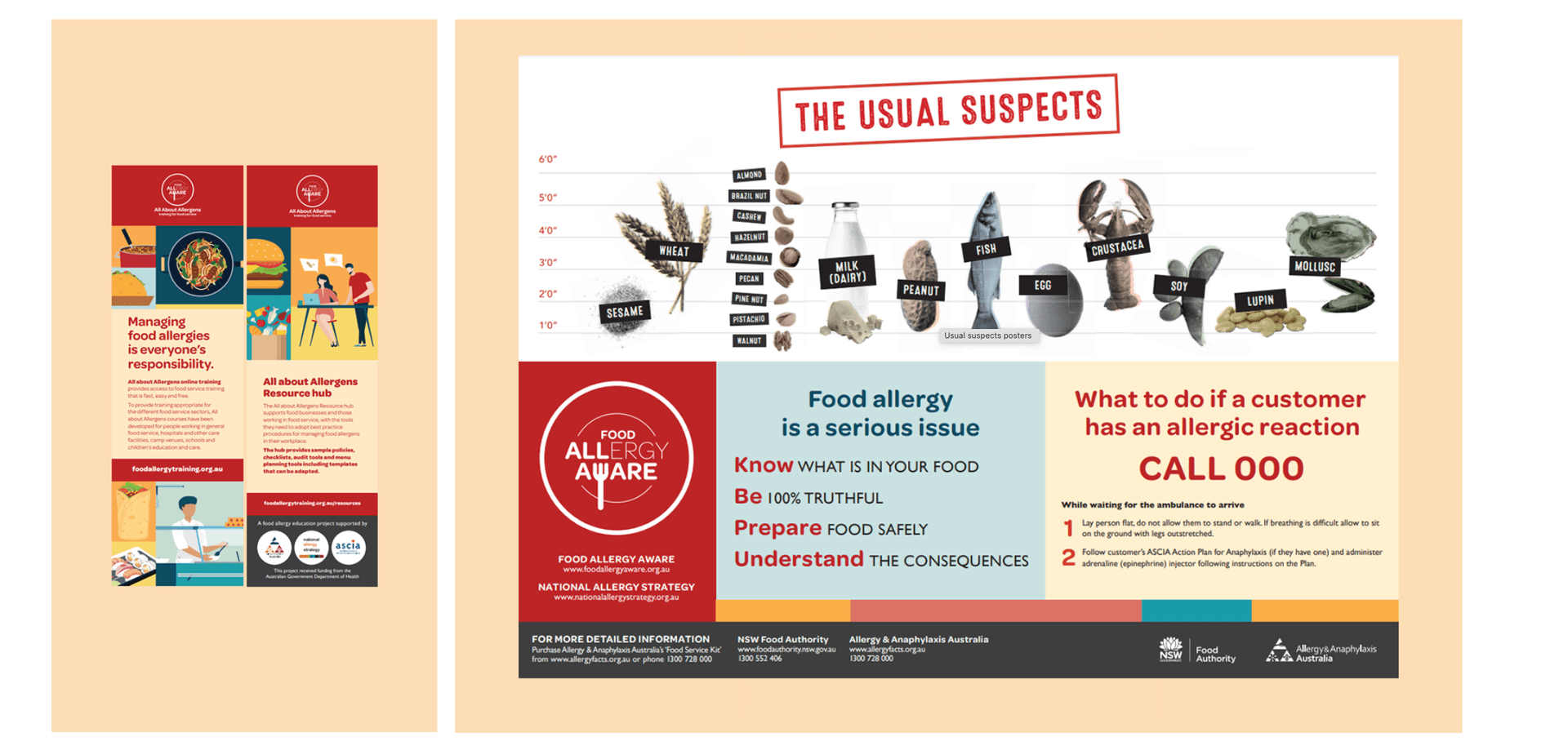 Food allergy training bookmarks and the Usual suspects posters can be ordered for free from Allergy & Anaphylaxis Australia and given to food businesses during inspection visits.