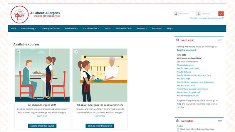 All about Allergens online training assists food business and those working in food service to learn more about food allergens, and to develop the best procedures to make their food business safe for customers with allergies. The course is free and takes about 45 minutes to complete.