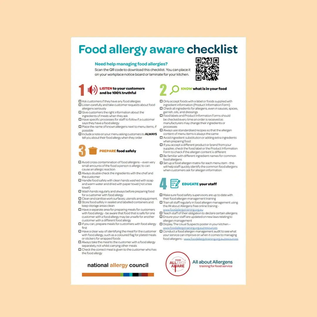 The food allergy aware checklist is a good place to start to quickly check if you are following best practice when it comes to managing food allergies.