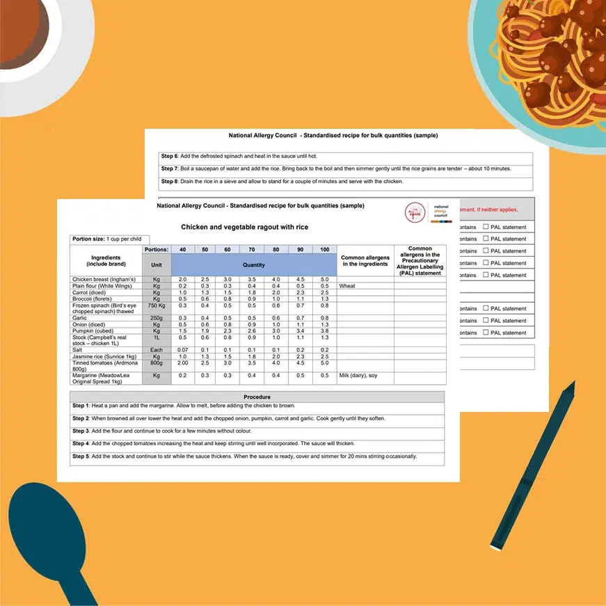 This means that the ingredients and food allergens will always be the same and match up with the food allergen menu matrix.